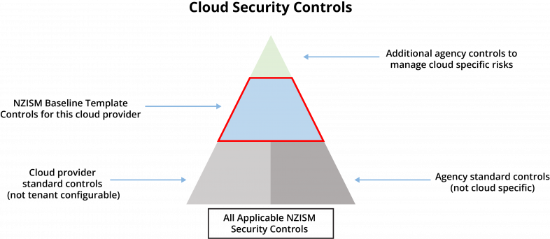 The central section of the pyramid depicts controls that are assessed through the use of the baseline security templates. These controls are specific to a cloud provider, and are able to be: